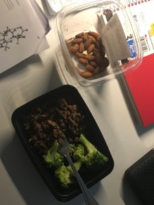 So, today the unexpected occurred. I was scheduled to volunteer at the hospital today, but plans changed and I wound up at work instead. I didn’t think I was going to be gone from my apartment for more than 4 hours so I never packed food. A planned 4 hr volunteer work turned out to a 6 hr day at the office. I had a pre-med advising meeting scheduled for 230 which I had to postpone to 3pm. As you can imagine, I went straight to my meeting after work and didn’t get home until 430pm. That’s when Meal 3 happened: