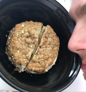 Notice, no carbs or fats. Because.. wait for it! The best part of tonight was: the oatmeal raisin cookie ice cream sandwich! I’m counting my double post workout carb as my cookies and my fats as the soft serve. That’s quite alright, right? ðĪŦ